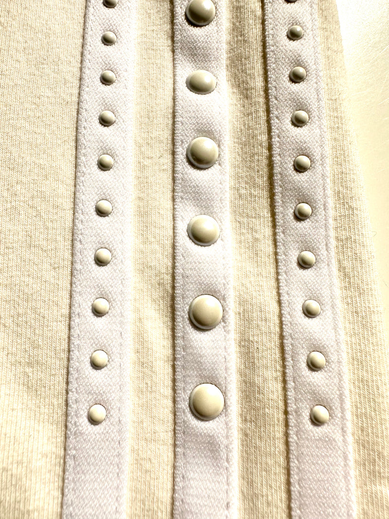 All natural non-dyed cotton high rise shorts. lightweight, stretch, easy care, regular length