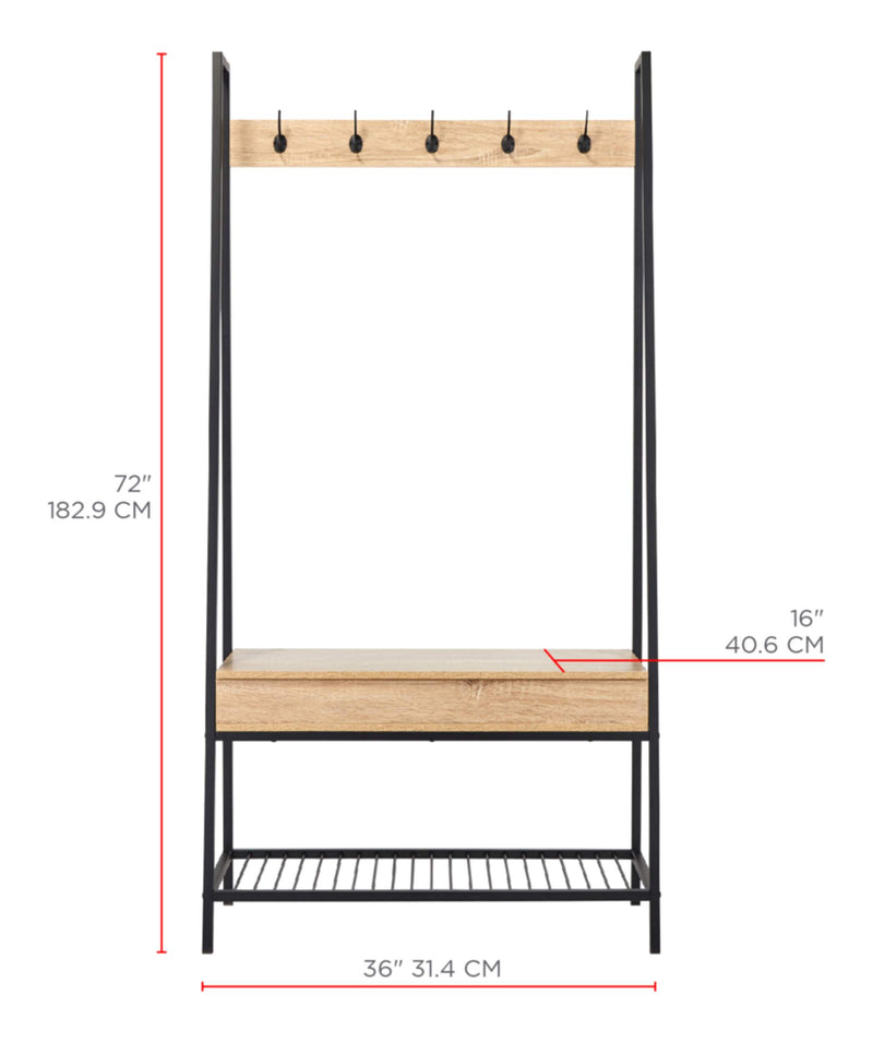 CANVAS Langham 5-Hook Coat Rack/Hall Tree, 36" x 16" x 72"